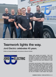 Design, build, engineer and maintain – that is the Jord Electric Ltd. promise of 360 degrees of service, all backed by long-term employees with an incredible depth of experience and