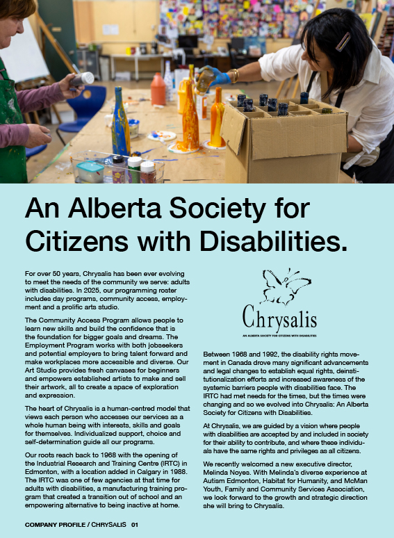 Chrysalis is a leader in the development and delivery of innovative, high quality and human-centred services and supports for Albertans with disabilities. We have come so far in the past 57 years and we can do so much more with the support of our community! Join us in creating change, growth and opportunity for everyone in our community.