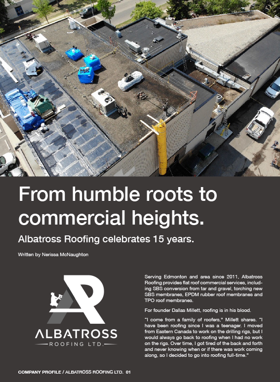 Serving Edmonton and area since 2011, Albatross Roofing provides flat roof commercial services, including SBS conversion from tar and gravel, torching new SBS membranes, EPDM rubber roof membranes and TPO roof membranes.