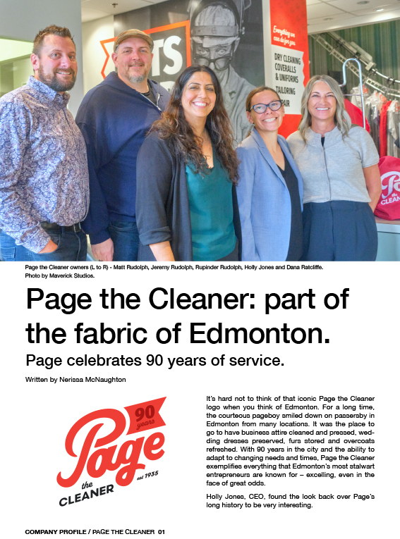 It’s hard not to think of that iconic Page the Cleaner logo when you think of Edmonton. For a long time, the courteous pageboy smiled down on passersby in Edmonton from many locations. It was the place to go to have business attire cleaned and pressed, wedding dresses preserved, furs stored and overcoats refreshed. With 90 years in the city and the ability to adapt to changing needs and times, Page the Cleaner exemplifies everything that Edmonton’s most stalwart entrepreneurs are known for – excelling, even in the face of great odds.