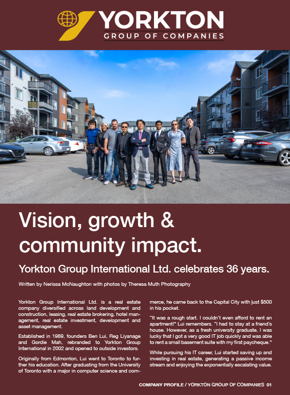 Lui laughs at the suggestion but admits he is pleased that his deep understanding of real estate, analytical mind and calculated approach have translated into success and outstanding returns for our shareholders. This trajectory is set to continue since Yorkton Equity Group is at the point where it can leverage bulk purchasing and the strong supports from financial institutions providing attractive financing terms.